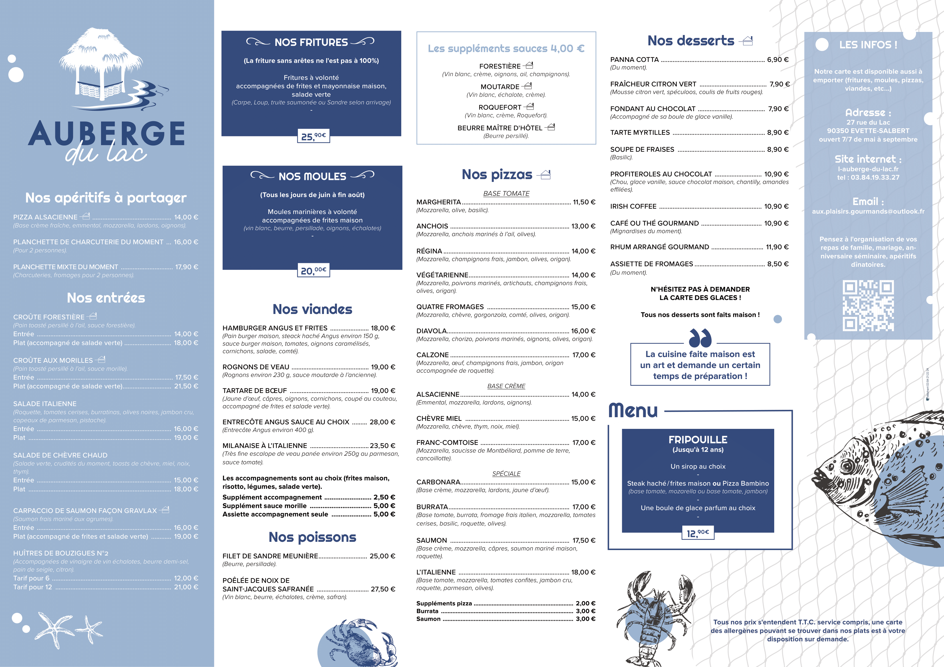 Notre carte, une véritable ode aux trésors culinaires de notre terroir, fait la part belle aux spécialités régionales. Laissez-vous tenter par nos incontournables Fritures de Carpes, une délicatesse provenant directement de la Pisciculture du Moulin à Delle. Ces petits joyaux de nos eaux locales sont préparés avec soin pour vous offrir une expérience gustative unique, à la fois croustillante et fondante.